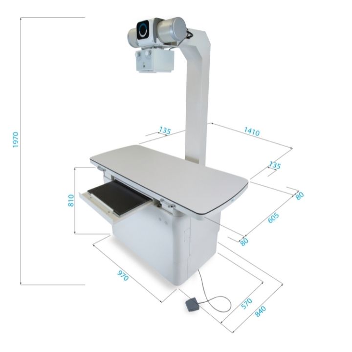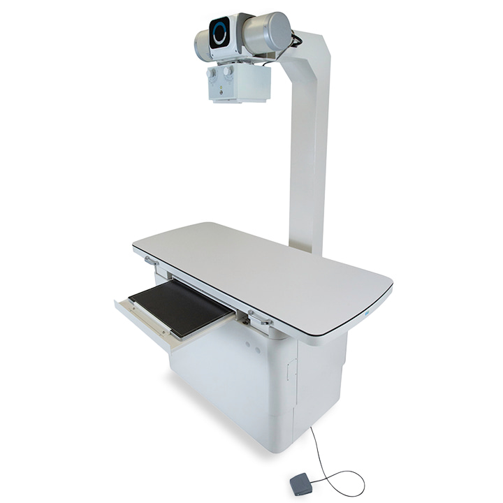 - Компактный стильный прибор аккуратно впишется в рабочее пространство и не будет загромождать периферийными устройствами с проводами: излучатель, DR-панель и генератор накопительного типа в одном аппарате.