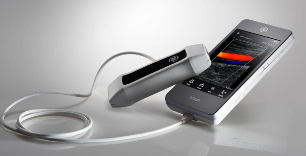 Ультразвуковая система Vscan Extend легко помещается на ладони.