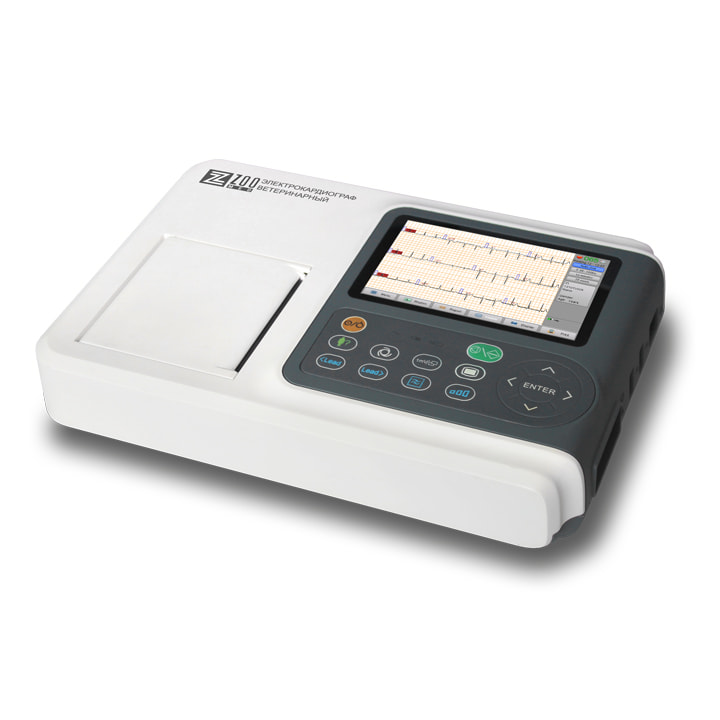 Электрокардиограф для животных — прибор, с помощью которого регистрируют электрические сигналы, возникающие во время работы сердечной мышцы. Все импульсы отображаются на 5-дюймовом жидкокристаллическом дисплее в виде графика ЭКГ, который можно сохранить в электронном формате или распечатать на термочувствительной бумаге. Безопасный и безболезненный метод позволяет выявить функциональные и органические нарушения, врожденные и приобретенные пороки сердца у животного.